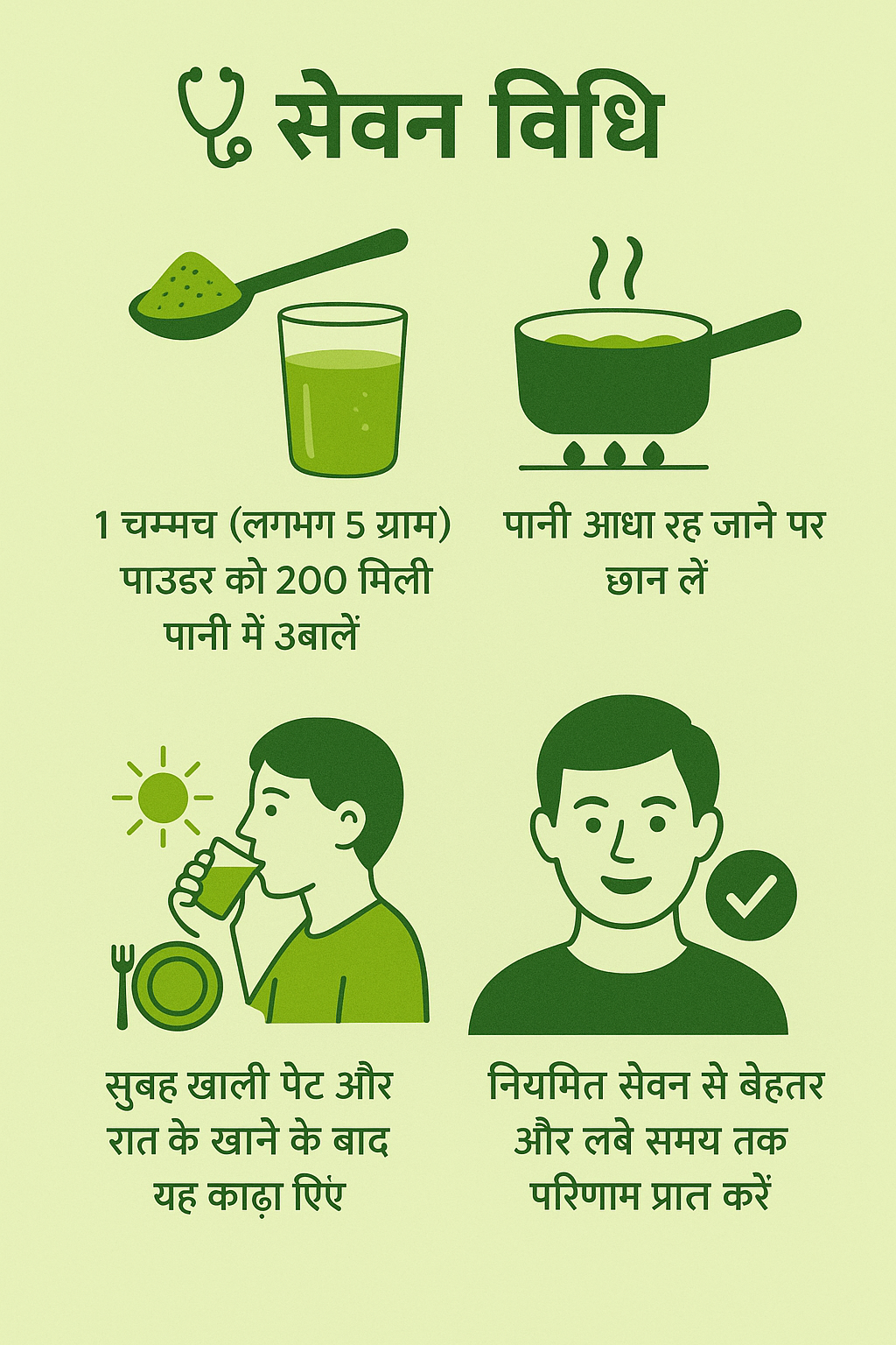 बिलकुल। यह काढ़ा पाउडर शुगर लेवल को नियंत्रित करने में मदद करता है, इम्यूनिटी को मजबूत बनाता है और सम्पूर्ण स्वास्थ्य को बढ़ावा देता है। यह 100% प्राकृतिक, सुरक्षित और बिना किसी लत के है—आपके रोज़ाना के जीवन में संतुलन, ऊर्जा और प्राकृतिक स्वास्थ्य का भरोसेमंद साथी।